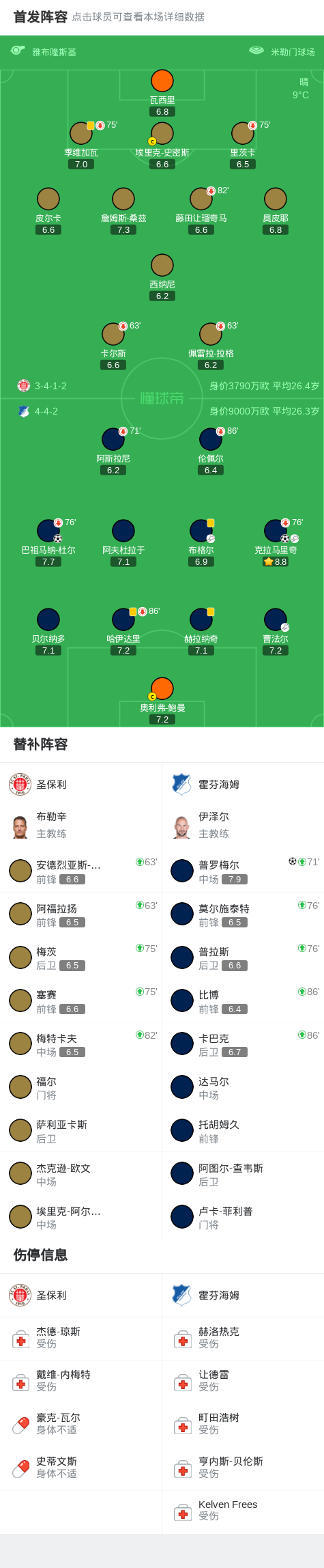 霍芬海姆3-0大胜圣保利,普罗梅尔、克拉马里奇破门